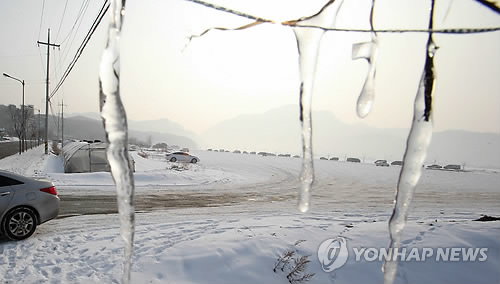 | △ 추위가 한풀 꺾인 강원 춘천시 의암호변에 얼어붙었던 고드름이 녹아내리고 있다. (연합뉴스 자료사진) |