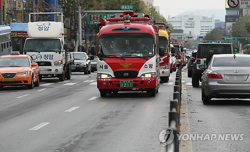 | △ 종로소방서 119구급차량들이 종로3가를 통과하는 모습. (연합뉴스 자료사진) |