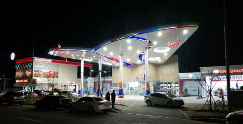 특히 주유소 캐노피(지붕)를 행복날개를 그대로 본떠서 디자인한 데다, 화려한 조명으로 디지털아트를 구현해 야간 경관이 눈에 띈다.