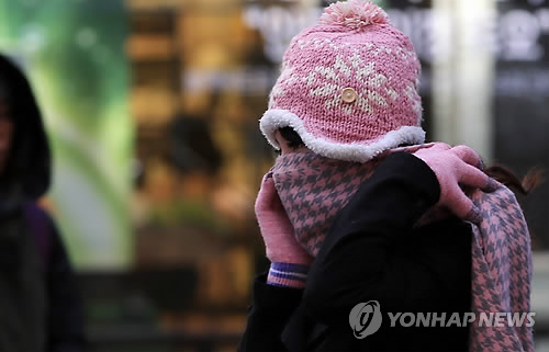 | △ 서울 아침 기온이 영하 10도 아래로 떨어지고 찬바람에 체감기온이 영하 19도까지 내려간 8일 서울 명동 거리에서 한 시민이 목도리로 얼굴을 가린 채 걷고 있다. |