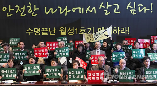 경주핵안전연대와 원전 주변지역 주민 등은 경북 경주시청 브리핑룸에서 연 기자회견에서 "일본 후쿠시마에서 폭발사고를 일으킨 원전이 모두 30년 지난 노후 원전임을 결코 잊어서는 안 된다"며 월성 1호기 수명연장 중단을 촉구했다.