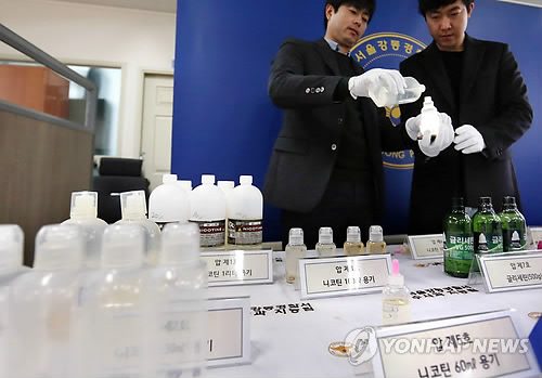 (서울=연합뉴스) 황철환 기자 = 새해부터 담뱃값이 올라 전자담배 수요가 늘어난 가운데, 허가없이 전자담배용 니코틴 액상을 제조해 판 10대들이 경찰에 붙잡혔다.