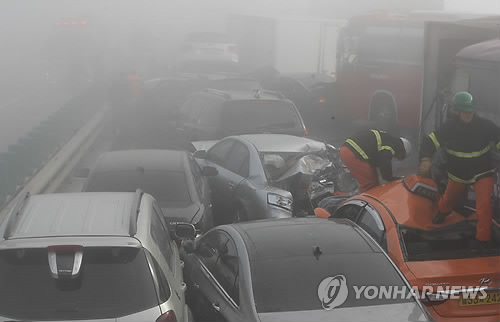 실제로 사고 현장에서 있던 한 운전자는 연합뉴스와의 인터뷰에서 "차량 앞유리에까지 안개가 낀 것 같았다"며 "사고가 난 차들이 안 보일 정도였다"고 전해 당시 안개 상황을 짐작케한다.