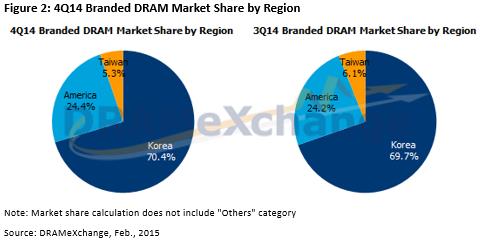 두 회사의 산술 점유율 합계는 69.1%로 70%에 못 미치지만, 과점체제인 D램 시장에서 지역 점유율을 따질 때는 한국·미국·대만 이외 다른 지역 업체를 포함하지 않기 때문에 한국 업체들의 점유율이 70.4%로 상향 반영된 것이다.