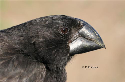 | △ 갈라파고스제도에 서식하는 다윈의 핀치 중 하나인 큰 핀치새(Geospiza magnirostris). 연구진 제공. |
