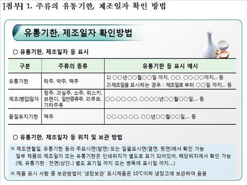 (서울=연합뉴스) 김병규 기자 = 주류에는 유통기한이 없는 것으로 알고 있는 사람이 의외로 많지만 이는 사실과 다르다. 탁주와 약주에는 유통기한이 있으며 다른 술에도 품질유지기한, 제조연월일 등이 표기돼 있다.