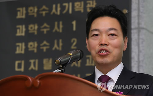 | △ 인사말하는 김오수 과학수사부장 (서울=연합뉴스) 김도훈 기자 = 16일 서울 서초구 대검찰청 국가디지털포렌식센터(NDFCP)에서 열린 과학수사부 출범식에서 김오수 과학수사부장이 인사말을 하고 있다. 과학수사기획관과 담당관 3명으로 운영되던 조직은 검사장급 과학수사부장과 기획관 1명, 과장 4명이 있는 과학수사부로 승격됐으며 검사 6명과 전문인력 124명 등 총 130명으로 구성됐다. 2015.2.16 superdoo82@yna.co.kr |