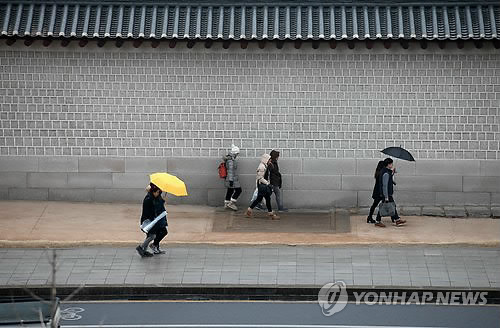 (서울=연합뉴스) 김연숙 기자 = 월요일인 16일 남해안 일부 지방을 제외한 전국에 비가 내리는 가운데 강원 산간 지방에는 대설주의보가 발효되는 등 눈이 오고 있다.