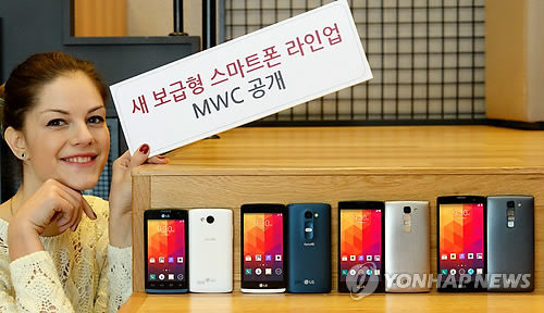 | △ LG전자, 올해 보급형 스마트폰 라인업 MWC서 공개 (서울=연합뉴스) LG전자는 다음 달 2일 스페인 바르셀로나에서 열리는 세계 최대 모바일 전시회 '모바일 월드 콩그레스(MWC 2015)'에서 해외시장을 대상으로 한 새로운 보급형 스마트폰 라인업을 공개한다고 23일 밝혔다. 이번에 공개되는 보급형 스마트폰은 L시리즈(3G), F시리즈(LTE) 등 기존의 보급형 라인업을 화면크기와 사양에 따라 개편된 것이다. (LG전자 제공) |