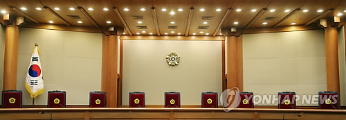 | △ 헌법재판소, 간통죄 위헌 여부 결정 (서울=연합뉴스) 최재구 기자 = 간통죄 처벌 조항 위헌 여부에 대한 헌법재판소의 판결을 하루 앞둔 25일 판결이 내려질 서울 종로구 북촌로 헌법재판소 대심판정의 모습. 2015.2.25 jjaeck9@yna.co.kr |
