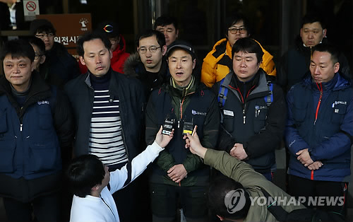 | △ 승소 소감 말하는 현대차 협력업체 근로자 (서울=연합뉴스) 이지은 기자 = 26일 오전 서울 서초구 서초동 대법원에서 현대차 노조원과 협력업체 근로자들이 기자회견을 연 가운데 김기식씨가 소감을 말하고 있다. 이날 대법원은 현대자동차 아산공장에서 협력업체 소속 근로자로 근무하던 김모씨 등 7명이 근로자 지위를 확인해달라며 현대차를 상대로 제기한 소송에서 4명에 대해 승소 판결한 원심을 확정했다. |