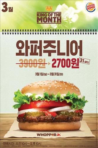<쇼핑정보> 버거킹, 3월 한달 와퍼주니어 31% 할인