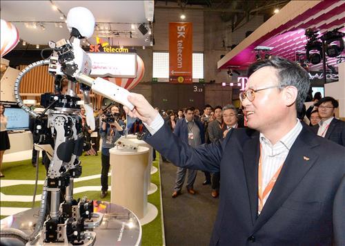 장 사장은 이번 MWC 참가가 SK텔레콤 수장으로서 글로벌 무대 데뷔인 셈이다. MWC 참석을 계기로 세계이동통신사업자협의회(GSMA) 이사회 신임 멤버로 인사도 했다. 갤럭시S6 개발의 주역인 삼성전자 신종균 사장과도 만나 양사간 협력방안도 집중 논의했다.