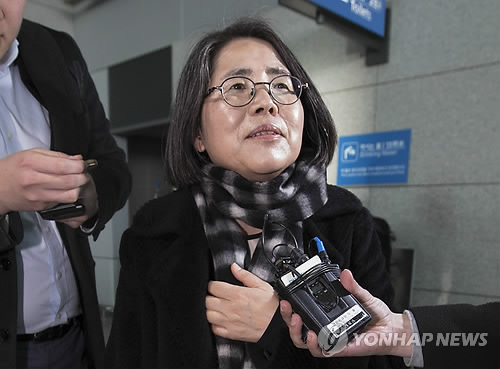 | △ 취재진에 답변하는 김영란 전 국민권익위원장 (영종도=연합뉴스) 윤동진 기자 = 지난 3일 김영란법이 통관된 가운데 4일 오전 영종도 인천국제공항에서 김영란 전 국민권익위원장(서강대 법학전문대학원 석좌교수)이 취재진에게 답변을 하고 있다. 2015.3.4 mon@yna.co.kr |