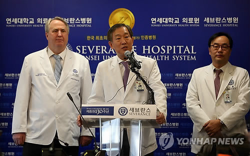 | △ 리퍼트 주한미국대사의 회복 상태 브리핑을 하고 있는 윤도흠 세브란스 병원장 |