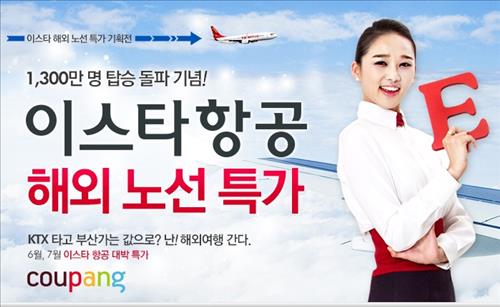 (서울=연합뉴스) 김아람 기자 = 소셜커머스 쿠팡은 20일까지 '이스타항공 해외노선 특가 기획전'을 연다고 11일 밝혔다.