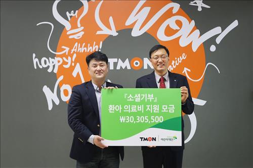 티몬은 지난 10일 모금액을 초록우산 어린이재단측에 전달했다. 기부금은 다운이를 위한 의료장비와 생활비 등을 지원하는 데 쓰인다.