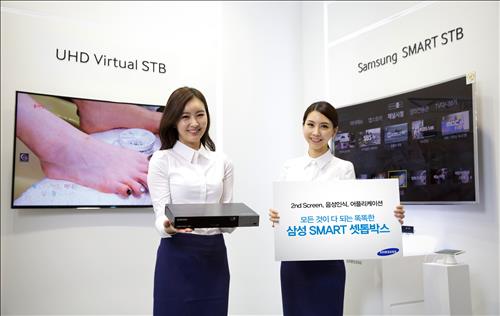 스마트폰에서 TV에 방송되는 영상을 시청할 수 있는 모바일 세컨TV 기능, 음성인식, 삼성 앱스 등이 적용된 2015년형 스마트 셋톱박스도 전시했다.