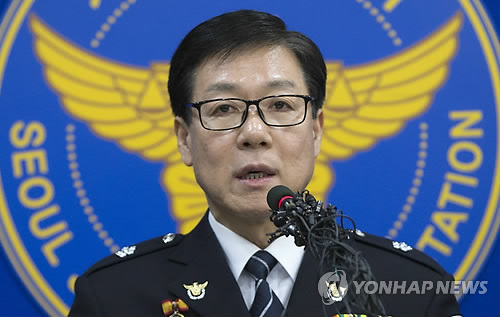 | △ 김기종 최종 수사결과 브리핑 (서울=연합뉴스) 윤동진 기자 = 김철준 서울청 수사본부장이 13일 오전 서울 종로서 브리핑실에서 마크 리퍼트 주한 미대사를 피습한 김기종의 수사결과를 브리핑 하고 있다. |