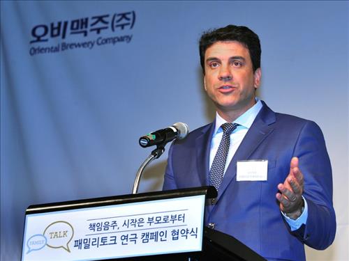 프레데리코 프레이레 오비맥주 사장은 지난 13일 종로구 나인트리 컨벤션에서 열린 한국메세나협회와의 청소년 음주예방 운동 협약식에 참석해 이같이 밝혔다.