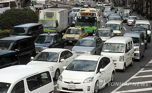 | △ 2015년 2월 27일 오후 일본 도쿄의 한 도로에서 차량이 줄을 지어 신호가 바뀌기를 기다리고 있다. |