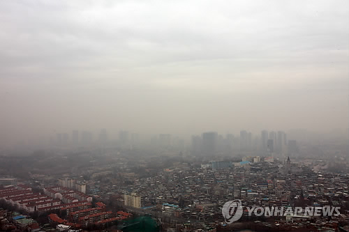| △ 서울 하늘에 미세먼지 (서울=연합뉴스) 박동주 기자 = 서울지역에 전날 밤부터 미세먼지 주의보가 발령된 가운데 17일 오전 남산에서 바라본 서울 하늘이 뿌옇다. |
