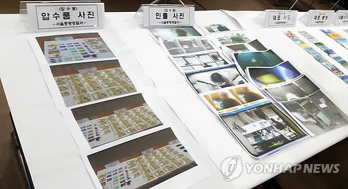 | △ '백화점식 사기 행각' 인출책 덜미 (서울=연합뉴스) 이태수 기자 = 서울 중랑경찰서는 대출 사기, 보이스 피싱, 고철 판매 사기 등 수십억대 사기 행각을 벌인 혐의(사기 등)로 인출 총책 전모(26·여)씨 등 10명을 구속하고 35명을 불구속 입건했다고 31일 밝혔다. 경찰에 따르면 이들은 작년 10월부터 올해 2월까지 피해자 300여명이 일당에게 속아 입금한 40억여원을 인출해 필리핀에 있는 총책 민모씨에게 송금한 혐의를 받고 있다. 사진은 대포카드, 압수품 등 증거품. 2015.3.31 tsl@yna.co.kr |