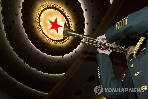| △ 中양회(兩會) 폐막…'4개전면' 앞으로 수정/본문 7째줄 '정책으로 공'을 '정책으로 공식'으로 (AP=연합뉴스) 중국의 최대 정치행사인 양회(兩會·전국인민대표대회와 전국인민정치협상회의)가 15일 전국인민대표대회(전인대) 폐막을 끝으로 모두 마무리됐다. 전국인민정치협상회의(정협)는 앞서 13일 폐막했다. 전인대는 업무보고와 관련, 보고서에 공식적으로 포함되지 않았던 '엄격한 당관리'(從嚴治黨)를 삽입했다. 이는 시진핑(習近平) 국가주석이 추진중인 '4개 전면'(4個全面)이 정부 차원의 정책으로 공식 규정됐음을 의미하는 것으로 풀이된다. '4개 전면'이란 '개혁 심화', '의법치국'(依法治國·법에 따른 국가통치), '샤오캉(小康: 모든 국민이 편안하고 풍족한 생활을 누리는 상태) 사회 건설', '엄격한 당관리'를 의미한다. bulls@yna.co.kr A Chinese military band member rehearses before the closing session of the annual National People's Congress in Beijing's Great Hall of the People, Sunday, March 15, 2015. (AP Photo/Ng Han Guan) |