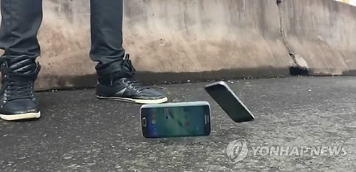 (서울=연합뉴스) 한지훈 기자 = 갤럭시S6 출시를 앞두고 미국과 중국에서 흑색선전이 난무하는 가운데 갤럭시S6 엣지의 내구성 우려를 불식하는 낙하 실험 결과가 공개됐다.
