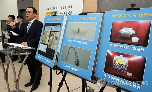 | △ 지난해 고액체납자로부터 총 1조4천억 징수 국세청 심달훈 징세법무국장이 9일 오전 세종시 국세청에서 브리핑을 통해 2014년 한 해 동안 고액·상습체납자에 대한 재산추적조사를 통해 총 1조4천28억원의 체납 세금을 징수하거나 확보했다고 밝히고 있다. 전체 체납세금 가운데 현금징수액은 7천276억원, 부동산 및 골동품 등 현물징수액은 6천752억원이다. |