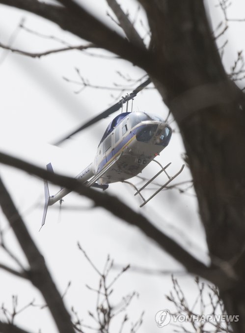 | △ 북한산 일대 수색하는 경찰 헬기 (서울=연합뉴스) 윤동진 기자 = 자원외교 비리 의혹에 연루돼 사전 구속영장이 청구된 성완종 전 경남기업 회장이 9일 잠적한 가운데 경찰 헬기가 이날 오전 북한산 일대를 수색하고 있다. |