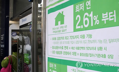 | △ 한 시중은행에 내걸린 대출광고 플래카드(연합뉴스 자료사진) |