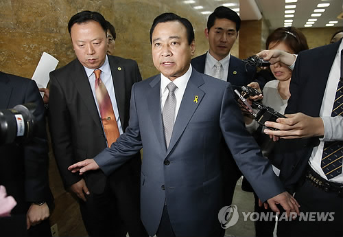 | △ 굳은 표정의 이완구 총리 (서울=연합뉴스) 이상학 기자 = 이완구 국무총리가 14일 국회에서 열린 외교·통일·안보 분야 오전 대정부질문을 마친 뒤 취재진의 질문을 받으며 이동하고 있다. |
