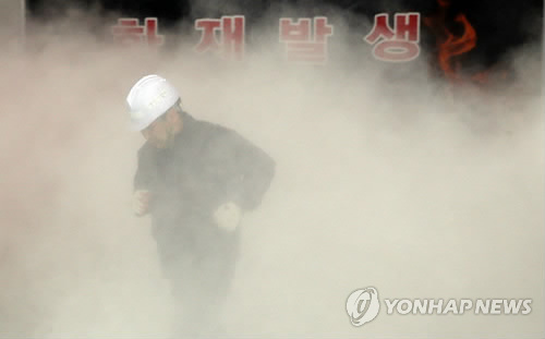 세종청사는 지하에서 발생한 화재를 가정한 훈련을 실시했다.