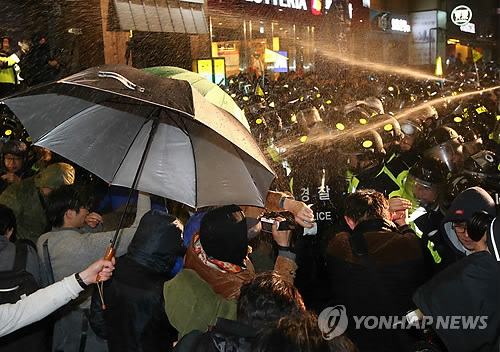 이어 수표교를 통해 종로로 진입한 시위대 6천여명(경찰 추산)은 오후 10시20분께 종로2가 사거리를 점거하고 광화문 방면으로 이동하다 YMCA 앞에서 차벽과 병력 등으로 막아선 경찰과 맞서 몸싸움을 벌이기도 했다.