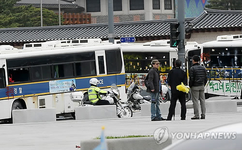 앞서 경찰은 경력 1만3천700여명과 차벽트럭 18대를 비롯한 차량 470여대, 안전펜스 등을 동원해 경복궁 앞, 광화문 북측 광장, 세종대왕 앞, 세종로 사거리, 파이낸셜빌딩 등에 6겹으로 시위대 저지선을 쳤다.