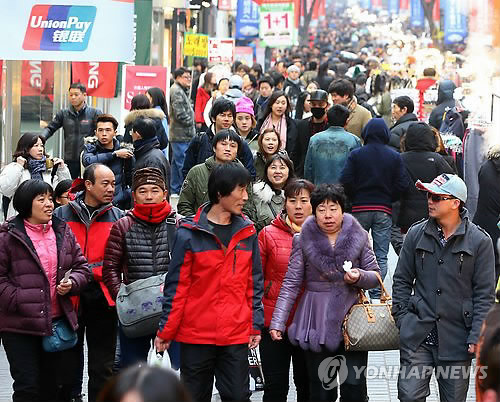 | △ 중국인 관광객으로 붐비는 명동(연합뉴스 자료사진) |