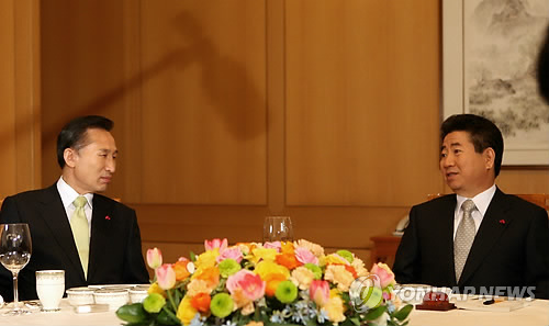 | △ '성완종 특별사면' 누가 주도했나 (서울=연합뉴스) 성완종 전 경남기업 회장의 2008년 1월1일자 특별사면에 대해 새누리당은 당시 노무현 대통령측이, 새정치민주연합은 이명박 대통령 당선인측이 주도했다고 서로 주장하며 여야가 격돌하고 있다. 사진은 2007년 12월 28일 오후 청와대에서 회동하는 노무현 대통령과 이명박 대통령 당선인. 2015.4.23 <<연합뉴스 DB>> zjin@yna.co.kr |