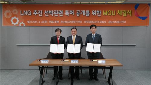 대우조선해양은 경남창조경제혁신센터(센터장 최상기), 경남지식재산센터(센터장 김규련)와 '천연가스 추진 선박' 핵심특허 기술의 무상공개 및 기술이전을 내용으로 하는 양해각서(MOU)를 체결했다고 30일 밝혔다.