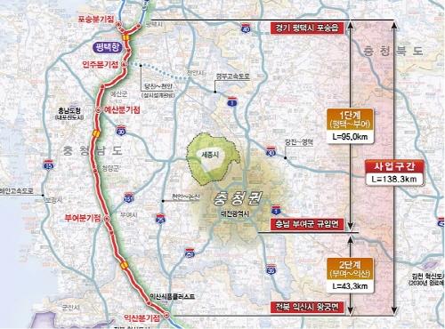 국토부는 포스코건설 컨소시엄과 앞으로 실시협약 체결, 실시설계 등 절차를 거쳐 2017년부터 2022년까지 평택∼부여 1단계 구간부터 건설할 계획이다.