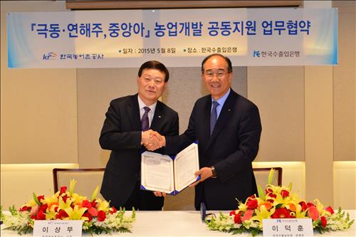 (서울=연합뉴스) 고동욱 기자 = 한국수출입은행은 8일 한국농어촌공사와 극동·연해주, 중앙아시아 지역의 해외 농업개발을 촉진하고 현지 농산물의 생산·유통에 필요한 인프라 조성 사업을 공동 지원하기 위한 업무협약을 체결했다.