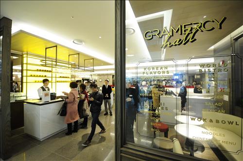 그래머시홀은 자리를 안내받고 자리에서 주문과 계산을 할 수 있는 레스토랑식 푸드홀이고, 지하 1층 고메스트리트에는 뉴욕의 식료품점 '딘앤델루카'와 청담동 유명 한식당 '마루터' 등 맛집 11곳이 모여있다.