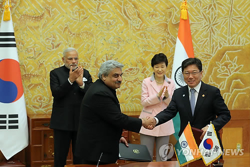 윤상직 산업통상자원부 장관과 아닐 와드화 인도 외교부 차관은 18일 서울에서 양국 정상이 참석한 가운데 '한·인도 시청각물 공동제작 협정'을 체결했다.