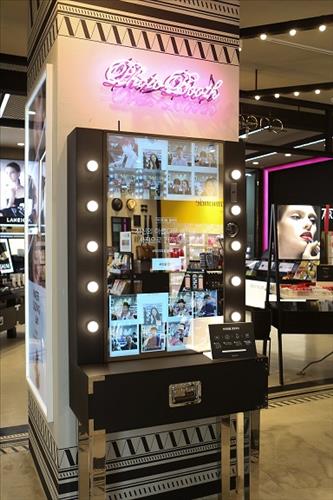 매장 안에는 카메라가 장착된 '메이크업 미러(거울)'가 설치돼 고객이 피부톤을 측정하고 그에 맞는 화장품을 고를 수 있다. 고른 제품을 거울 앞 선반에 올려두면 해당 제품의 사용법과 온라인 구매 후기가 거울에 뜬다.