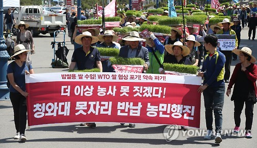 전국농민회총연맹은 21일 발표한 결의문에서 "밥쌀용 쌀 수입은 세계무역기구(WTO) 쌀 협상을 포기하는 행위이자 쌀값 폭락을 부채질하는 행위"라며 "정부와 새누리당은 밥쌀용 쌀 수입 입찰을 강행해 농민을 배신했다"고 목소리를 높였다.