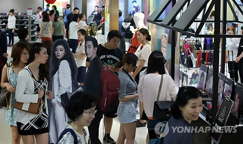 | △ 지난해 9월 서울 소공동 롯데백화점 본점 행사장에서 중국인 고객이 선호하는 32개 브랜드 상품으로 구성된 '한류 인기 브랜드 상품전'이 열리고 있다. (연합뉴스 자료사진) |