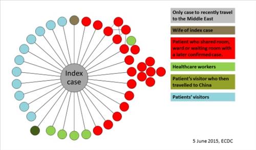 ECDC는 "한국에서 MERS-CoV바이러스 감염 집단이 다수 발견된 것을 계기로 위험성 평가를 갱신한다"며 국내 환자 발생 경로와 현황 등을 그림과 도표를 이용해 자세히 설명했다.