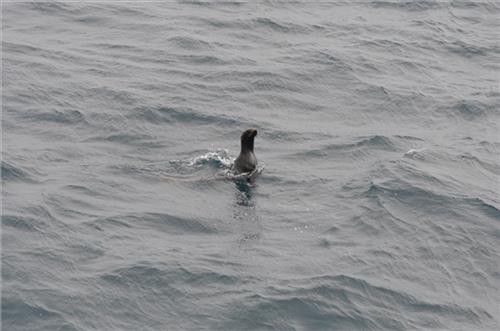 지난달 30일 오전 11시 20분께 독도 동남쪽 약 27㎞ 해역에서 수산과학원 자원조사 전용선박 '탐구 20호' 주변에 물개가 접근했다.