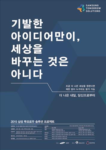 7월 5일까지 삼성 투모로우 솔루션 홈페이지(www.tomorrowsolutions.co.kr)와 미래창조과학부 창조경제타운 사이트(https://www.creativekorea.or.kr)에 응모하면 된다.