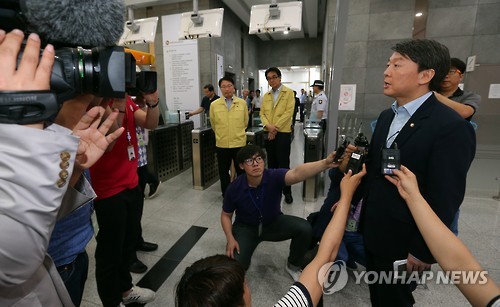 (세종=연합뉴스) 전명훈 기자 = 세계보건기구(WHO) 합동 조사단이 국내 중동호흡기증후군(메르스) 조사 내용을 발표하는 자리에 안철수 전 새정치민주연합 공동대표가 찾아왔다가 기자회견장에 입장하지 못하고 돌아가는 해프닝이 있었다.